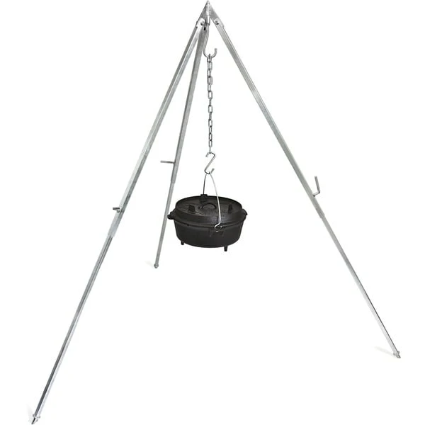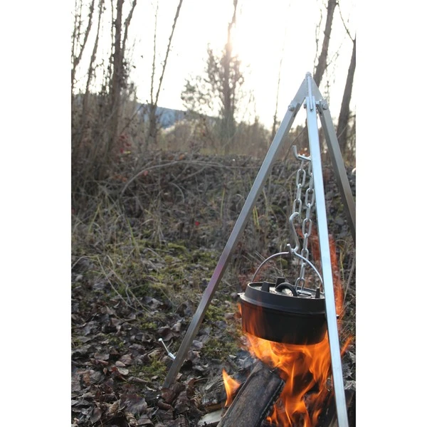 Mit dem Petromax Dreibein lässt sich nahezu überall kochen: An dem robusten Haken des Dreibeins können Feuertöpfe, Kessel und Co. aufgehängt werden, dabei ist die Höhe durch die Kette justierbar um so die Garzeit zu erhöhen/zu verlangsamen. Die abgeschrägten Füße sorgen auf den verschiedensten Böden für einen sicheren Stand des Dreibeins. Zudem ist jedes Bein einzeln und stufenlos höhenverstellbar, sodass sich Unebenheiten des Untergrunds mühelos ausgleichen lassen.