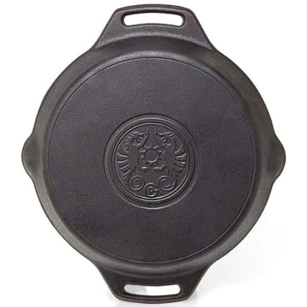 Die gusseiserne Petromax Feuerpfanne fp25h gehört mit ihrer exzellenten Wärmespeicherung zur Ausstattung jeder Küche. Ob in der Draußen-Küche über dem offenen Feuer gekocht wird oder auf dem Herd zuhause, man kann die Feuerpfanne sowohl auf herkömmlichen Herdplatten, auf Gasflammen, im Backofen als auch im Freien auf einer Kochstelle, über einem Lagerfeuer oder auf einem passenden Grill verwenden. Das Gusseisen mit seiner ausgezeichneten Wärmeverteilung und -speicherung ist dank der vorbehandelten Oberfläche (seasoned finish) sofort einsatzbereit und leicht zu pflegen.Art.-Nr.: 1532892