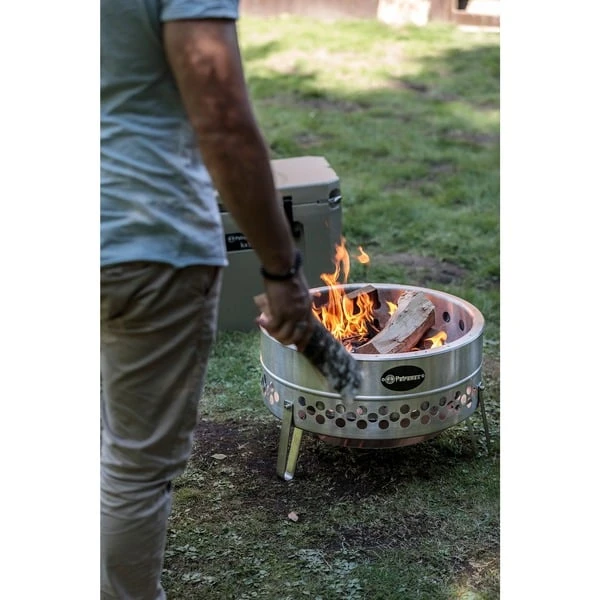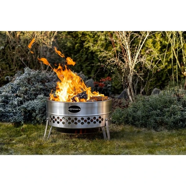 Die Feuertonne Tyropit bringt das authentische Lagerfeuer für echte Wildnis-Atmosphäre nach Hause in den Garten. Ob allein oder in geselliger Runde, die beruhigende Atmosphäre des Feuers sorgt für warme, entspannte Abende im Freien. Sommer- und Winterabende werden durch die nahezu unverwüstliche, doppelwandige Feuertonne aus Edelstahl ganz besonders gemütlich. Mit Freunden und Familie ist die Petromax Feuertonne genau das Richtige um sich Marshmallows, Stockbrot oder Würstchen schmecken zu lassen und gemeinsam das Feuer zu genießen. Durch das Holzvergaserprinzip, den Kamineffekt, die doppelwandigen Konstruktion und das fortschrittliche Sekundärverbrennungssystem kommt es bei der Feuertonne Tyropit zu einer sehr sauberen und beinahe rauchfreien Verbrennung. Ein Kohlerost bringt das Brennmaterial in der Feuertonne in die richtige Position und die Ascheschale fängt die Brennrückstände zuverlässig auf. Die drei Standbeine sorgen für einen sicheren Stand auf beinahe jedem Untergrund und das integrierte Hitzeschild reduziert die Hitze nach unten und schützt den Boden vor Beschädigungen. Die Feuertonne Tyropit ist perfekt für alle, die das Gefühl von Abenteuer und Wildnis in ihrem Alltag erleben wollen. Die Feuertonne Tyropit lässt sich problemlos mit verschiedenen Produkten aus dem Petromax-System erweitern, sowohl als Feuerstelle als auch als Kochstelle.Art.-Nr.: 100100155