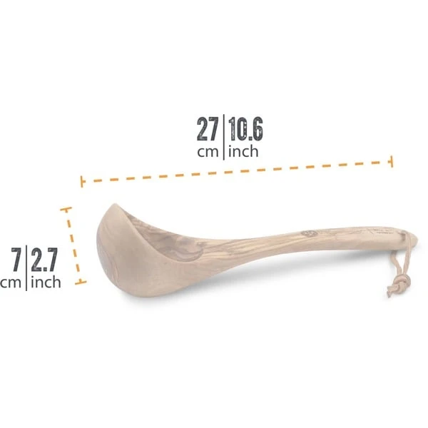 | Hinweis | Pflege: Kelle nur mit milder Seife und wenig Wasser reinigen. Wenn er besonders gepflegt werden soll, dann den Esslöffel abreiben und mit etwas hochwertigem Olivenöl einreiben. Nach der Reinigung gut trocknen lassen. Bei dem Verwenden von stark färbenden Lebensmitteln, wie beispielsweise Rotweinsaucen oder Tomatensuppen, kann sich das Holz des Löffels verfärben. | ||