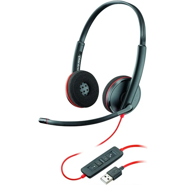 Das Plantronics Blackwire 3220 ist ein schnurgebundenes Headset für Telefone, zum Musik hören oder für Multimedia-Anwendungen, dabei ist es dank USB l mit dem PC/Notebook einsetzbar. Durch das besonders leichte Design, sitzt das Blackwire 3220 auch nach stundenlangem Tragen noch angenehm und drückt dank der weichen Kunstleder-Ohrkissen nicht. Das montierte Mikrofon liefert eine exzellente Sprachverständlichkeit und blendet nahezu alle Außengeräusche aus. Wird es nicht benötigt, kann man es einfach nach hinten klappen. Am Kabel befindet sich eine Steuereinheit, mit der sich die Lautstärke anpassen, ein Gespräch annehmen oder das Mikrofon stumm schalten lässt.Art.-Nr.: 1662981