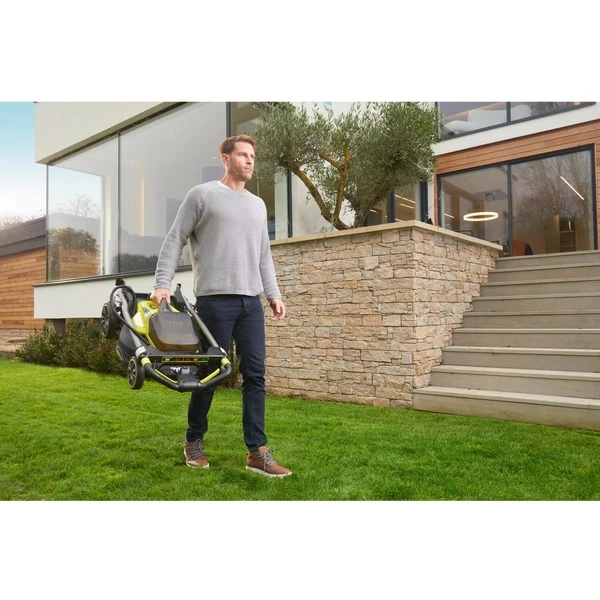 Der Ryobi ONE+ Akku-Rasenmäher RY18LMX40A-0 eignet sich zum kabellosen Mähen mittelgroßer Rasenflächen. Der bürstenlose Motor sorgt dabei für eine hohe Schneid- und Absackleistung. Praktisch ist die Mulchfunktion, mit der das geschnittene Gras fein zerkleinert als natürlicher Dünger im Rasen verbleibt. Die nach innen versetzten Räder und der Rasenkamm ermöglichen dabei auch randnahes Mähen. Der Rasenmäher RY18LMX40A-0 hat eine 5-stufige Schnitthöhenverstellung, die Schnittbreite beträgt 40cm. Das Griffgestänge lässt sich zur platzsparenden Aufbewahrung zusammenklappen, und der integrierte Tragegriff erleichtert den Transport. Der RY18LMX40A-0 ist mit einer 50 Liter Grasfangbox ausgestattet. Ryobi IntelliCell überwacht jede Zelle der ONE+ Akkus, maximiert die Laufzeit je Akkuladung und erhöht die Lebensdauer. Das einzigartige Leistungsmanagement liefert optimale Leistung und Laufzeit für alle ONE+ Geräte und Anwendungen.Art.-Nr.: 1669111