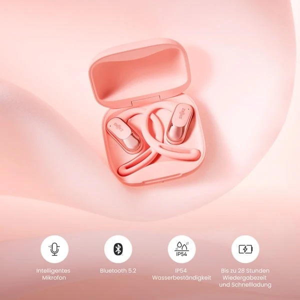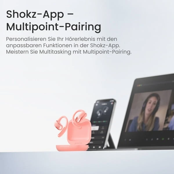 Die Kopfhörer OpenFit Air von Shokz kombinieren dank komfortablem Open-Ear-Design hohen Tragekomfort mit gutem Halt. Diese Kopfhörer bieten mit der DirectPitch-Technologie von Shokz ausgewogenen, natürlichen Klang und schnelles Laden für ununterbrochenen Audio-Genuss: Mit einer Ladung halten sie bis zu 6 Stunden durch – und schon nach 10 Minuten Laden ist genug Akkulaufzeit für zwei Stunden Musikgenuss vorhanden. In Kombination mit dem Ladeetui liegt die Laufzeit sogar bei bis zu 28 Stunden. Dabei sind sie mit Bluetooth 5.2 schnell und stabil gekoppelt und nach IP54 gegen Schweiß oder Spitzwasser geschützt. Vier integrierte Mikrofone mit adaptivem Beamformung sorgen für eine klare Stimme bei Gesprächen. Das OpenEar-Design ermöglicht trotz intensivem Audio-Erlebnis die zuverlässige Wahrnehmung der Außenwelt.Art.-Nr.: 100074090