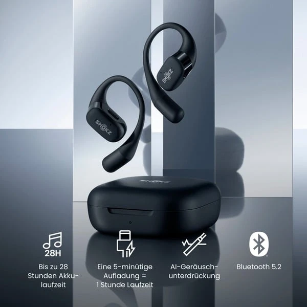 Die Shokz OpenFit im Open-Ear Design sind wie gemacht für Komfort. Sie bieten einen optimalen Tragekomfort und lassen es zu, dass man trotz Musikhören die Umwelt weiter wahrnehmen kann. Sie sitzen durch die Ohrschlinge besonders sicher und erzeugen so klar verständliche Telefonate. Dank Bluetooth Multipoint und einer Akkulaufzeit von bis zu 7 Stunden sind die OpenFit mit mehreren Geräten gleichzeitig kompatible und den ganzen Tag über einsatzbereit. Der kraftvolle Bass und die DirectPitch Technologie erzeugen dabei einen Sound, den man im Alltag nicht mehr missen möchte.Art.-Nr.: 100026675
