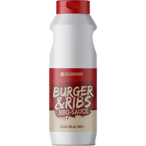 Alles neu und doch bekannt! Auf vielfachen Wunsch haben die SizzleBrothers die Rezeptur ihrer beliebten BBQ Burger Sauce verfeinert und vor allem eins gemacht: unnötige E-Stoffe und Allergene Zutaten entfernt. Natürlich wurde dabei nicht am Geschmack gespart. Dieser ist identisch geblieben, ja vielleicht sogar noch besser geworden und bietet den „Mc Rib Style“ für zu Hause. Insbesondere für Burger & Ribs, aber auch für Pulled Pork, Brisket oder als Dip eignet sich diese BBQ-Sauce bestens. Der fruchtig, süße Geschmack mit der leckeren Rauchnote begeistert einfach jeden. Außerdem wurde die Menge optimiert, sodass man die leckere Burger & Ribs BBQ-Sauce ab sofort auch in der praktischen 500 ml Variante bestellen kann – eine Größe die in jeden Kühlschrank passt.Art.-Nr.: 1658867