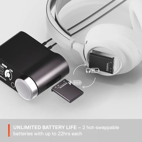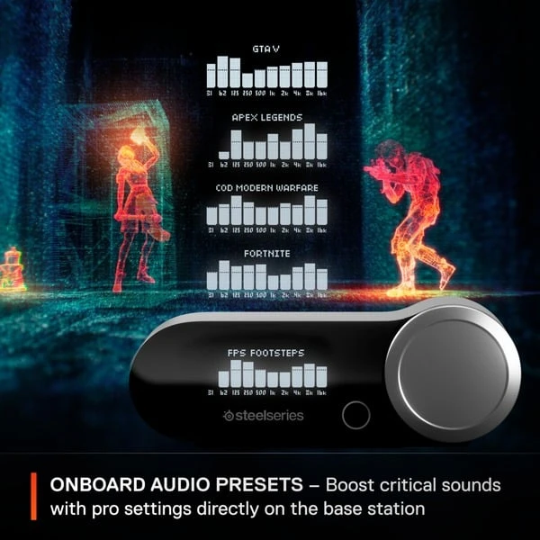 Mit dem SteelSeries Arctis Nova Pro Wireless ist man sofort startklar für die nächste Partie: Das Gaming-Headset bietet eine hohe Kompatibilität mit PC, Nintendo Switch, Playstation und mehr, dabei kann es drahtlos (Bluetoth) und per 3,5 mm Klinke oder über USB-C verbunden werden. Da die Hörmuscheln verstellt werden können, ist ein optimaler Sitz und eine gute Isolierung sicher gestellt, zusätzlich sorgt ANC (Active Noise Cancelling) mit dafür vorgesehenen Mikrofonen für einen Sound ohne Außengeräusche. Das dedizierte GameDAC erlaubt eine passgenaue Einstellung des Tons an den jeweiligen Inhalt und besitzt darüber hinaus ein brillantes OLED-Display zur besseren Erkennung. Neben einem satten Sound bietet das justierbare Mikrofon eine klare Sprachverständlichkeit, mit der man Taktiken optimal besprechen kann.Art.-Nr.: 100050181