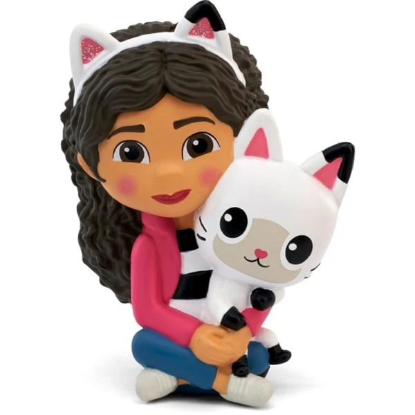 Diese Toniefigur entführt Kinder ab vier Jahren in die Welt von Gabby’s Dollhouse. Sie enhthält zwei Geschichten mit einer Laufzeit von insgesamt 43 Minuten. In „Das Raumschiff“ lernen wir Gabby kennen. Sie zeigt uns ihr Zimmer, ihren besten Kuscheltier-Freund Panda Pfötchen und ziemlich schnell wird klar, dass Gabby Katzen über alles liebt. In ihrem Puppenhaus erleben wir die katz-tastischsten Abenteuer. Außerdem enthält eine rätselhafte Box eine kleine Überraschung. Die zweite Geschichte „Gabby hat Schluckauf“ dreht sich um eine Puppenhaus-Lieferung, die eine neue Überraschung enthält. Gabby und Panda zeigen sie Kuchi und erfinden später einen Apparat gegen Schluckauf. Art.-Nr.: 100054925
