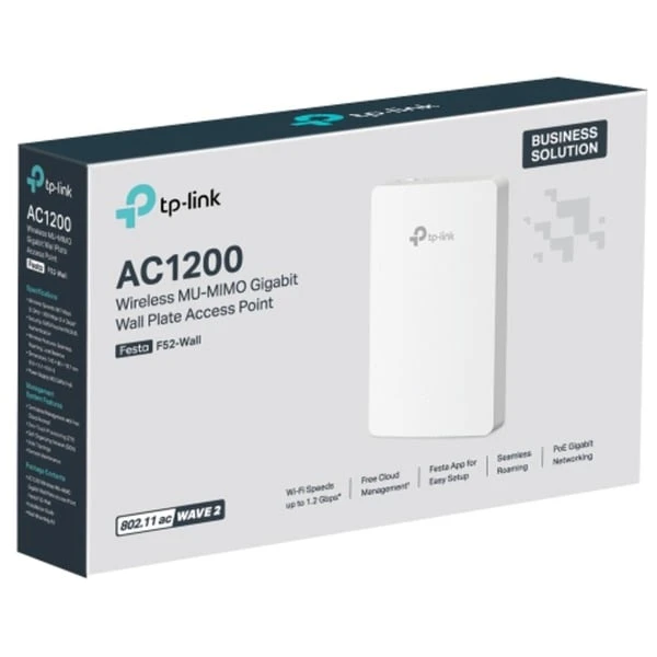 Festa bietet geschäftsklassische Funktionen mit verbraucherorientierter Einfachheit. Unsere kostenlose, cloudbasierte zentrale Verwaltung ist über die Festa App oder das Web zugänglich und bietet wesentliche Funktionen für kleine Unternehmen, ohne die Komplexität, die von größeren Betrieben erforderlich ist. Festa F52-Wall bietet Dual-Band bis zu 1200 Mbit/s Wi-Fi Bandbreite für Ihre Netzwerke und gewährleistet einen reibungslosen und schnellen Online-Zugang.Art.-Nr.: 100092754