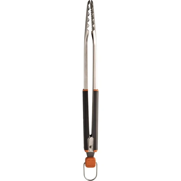 Die BBQ Grillzange BAC797 von Traeger ist aus Edelstahl hergestellt und verfügt über einen klassischen Griff mit Verriegelungsmechanismus und praktischer Aufhängeöse. Mit den gezackten Kanten lässt sich das Grillgut sicher umdrehen, wenden und bewegen. Sie macht Schluss mit fallen gelassenen Würstchen, ist spülmaschinenfest und hitzebeständig. Ihre Länge von 42cm gewährleistet einen sicheren Abstand zum heißen Grill.Art.-Nr.: 100153108