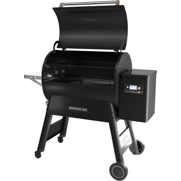 Der Ironwood 885 von Traeger ist für diejenigen gemacht, die die Messlatte für ihre Outdoor-Küche höher legen wollen. Dieser Titan eines Grills kann das gesamte Team problemlos versorgen, eine mit Holz angefeuerte Pizza backen, Hamburger und Bratkartoffeln oder 10 Hühnchen gleichzeitig mit einem zweistufigen, verstellbaren Grillrostsystem braten. Der Ironwood 885 hat mehr Leistung für mehr Geschmack dank eines völlig neuen D2 Direct Drive Antriebs. Der neue WiFIRE-Controller, der den Grill über die Traeger-App mit dem Smartphone (Android und iOS) verbindet, bietet eine ganz neue Art von Freiheit. Man kann den Super Smoke Modus einschalten, die Garraumtemperaturen ändern oder die Kerntemperatur der Speisen direkt vom Smartphone aus überwachen. Man kann auch Rezepte mit der GrillGuide-Technologie von Traeger direkt auf den Grill herunterladen, damit der Grill den gesamten Kochprozess selbst steuern kann. Mit dem neuen D2 Direct Drive Antrieb genießt man ein verbessertes Grillen und ein einfacheres Low&-Slow-Garen. TurboTemp liefert präzisere Gartemperaturen, während das perfekte Hartholzaroma in alles, was mit den Tru Convection und Downdraft Exhaust Systemen von Traeger gekocht wird, einfließt. Das Modell ist nun außerdem mit einem Pellet-Füllstandssensor ausgestattet.