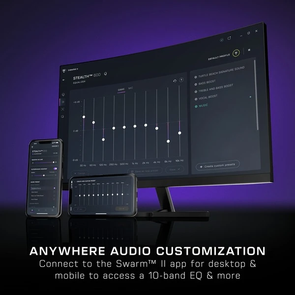 Das kabellose Turtle Beach Stealth 600 Multiplattform Gaming-Headset für XBox wurde vollständig überarbeitet. Mit der integrierten QuickSwitch Taste kann man ganz einfach zwischen kabellosen und Bluetooth Verbindungen mit niedriger Latenz umschalten, damit man keinen Moment der Aktion verpasst. Über das Gen 3 Mikrofon mit Stummschaltung und KI-Rauschunterdrückung gibt man klare Befehle und hört präzisen, detaillierten Gaming-Sound mit den 50 mm großen Nano Treibern und 3D Wave Audio. Über die Swarm II App kann man die Mikrofon- und Audioeinstellungen präzise konfigurieren und anpassen. Dank einer Akkulaufzeit von bis zu 80 Stunden und den Memory-Foam Ohrpolstern kann man zudem stundenlang bequem spielen.Art.-Nr.: 100056056