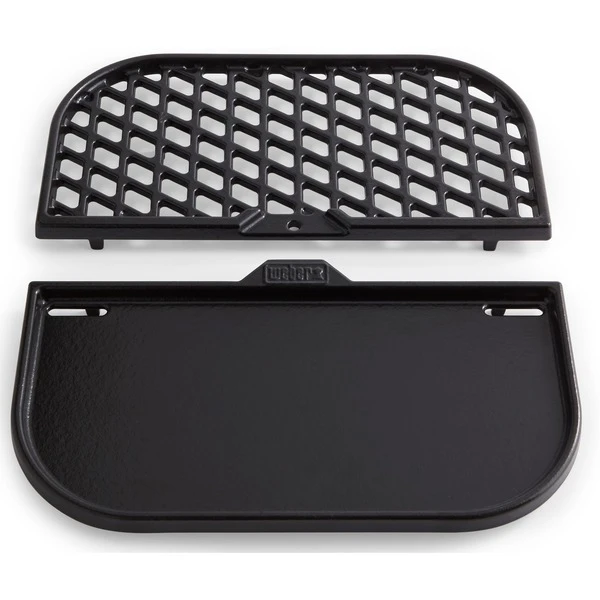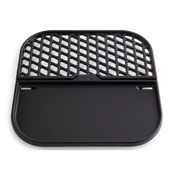 Mit der gusseisernen 2in1 Sear Grate & Grillplatte 8858 von Weber braucht man sich nicht mehr zwischen Grillen und Anbraten zu entscheiden, man kann einfach beides machen. Mit diesem Kombigerät aus Gusseisen spart man Zeit beim Grillen, indem mehrere Speisen gleichzeitig zubereitet werden können. Knusprige Speckstreifen und gleichzeitig gleichmäßig gebackene Pfannkuchen, oder man kann Steaks anbraten, während zugleich das Gemüse für Fajitas schmort. Die porzellanemaillierte Oberfläche ist einfach zu reinigen und die stapelbaren Teile sparen Platz bei der Aufbewahrung. Die 2in1 Sear Grate & Grillplatte passt auf die Gourmet BBQ System Grillroste der Weber Holzkohlegrills, SmokeFire Holzpelletgrills, Spirit, Genesis/Genesis II und Summit Gasgrills.Art.-Nr.: 1694229