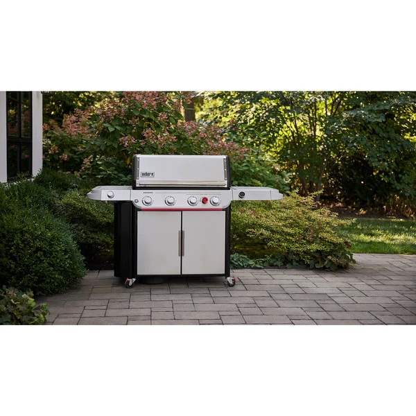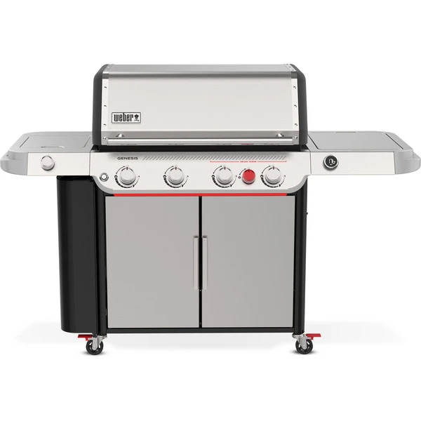 Der beeindruckende Weber Genesis SP-435W GBS liefert intensive Hitze und ein unglaubliches Aroma mit einem speziellen Sear-Brenner, der bis zu 50% mehr Leistung in der extragroßen Sear Zone freisetzt, um Fleisch, Fisch und Gemüse auffällige, aromatische Grillmuster zu verleihen. Die hocheffizienten PureBlu Brenner zünden zuverlässig und halten einen konstanten Gasfluss aufrecht. Die Weber Crafted Grillroste aus porzellanemailliertem Gusseisen, in die weiteres Gourmet BBQ System Grillzubehör passt (separat erhältlich), verwandeln den Grill in einen Dutch Oven, einen Geflügelhalter und vieles mehr. Mit dem Weber Crafted Gourmet BBQ System kann man alles grillen, was man sich vorstellen kann. Man ersetzt einfach den rechten Grillrost durch das Crafted Basis-Rahmen-Set, setzt das Grillzubehör in den Rahmen und fängt an zu grillen. Das separat erhältliche Grillzubehör lässt sich beliebig austauschen und ist daher unendlich vielseitig. Das Basis-Rahmen-Set ist für die Verwendung der Crafted Grill-Einsätze erforderlich und wird unter dem rechten Grillrost verstaut, wenn der Grill nicht verwendet wird. Auf dem Seitenkocher können gleichzeitig Saucen, Gemüse oder Beilagen direkt am Grill zubereitet werden. Das digitale Thermometer zeigt die Gartemperatur und ist Tag und Nacht gut ablesbar. Außerdem gibt es einen erweiterbaren oberen Grillrost, der die Grillfläche vergrößert und perfekt für kleineres Grillgut ist, und die im Griff integrierte NIGHTVISION-LED-Grillbeleuchtung, die sich automatisch einschaltet, wenn der Deckel angehoben wird. Der Genesis SP-435W GBS verfügt über vier Haupt-, einen Sear Zone-Brenner und einen Seitenbrenner, die man alle unabhängig voneinander stufenlos regulieren kann. Die Zündung erfolgt ganz praktisch über ein elektronisches Zündsystem. Die großen, individuell gestaltbaren Seitentische halten Grillwerkzeuge, Gewürze und vorbereitetes Grillgut griff-, grill- und servierbereit. Für eine optimale Platzausnutzung kann außerdem das vielseitige Weber Works Drop-in-Zubehör zum Einsetzen in den Seitentisch und das Snap-On-Zubehör zum Einhängen an den Seitenschienen ergänzt werden (separat erhältlich). Auch ein großer Seitenschrank ist an der linken Seite integriert.Art.-Nr.: 100108682