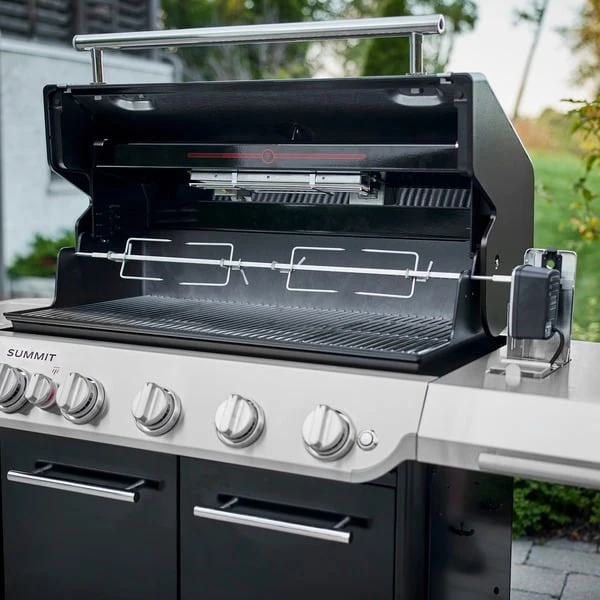 Der Summit FS38 E, der Spitzengasgrill von Weber, begeistert mit seinen Features und Grilltechniken im Freien die Famile, Freunde und Gäste mit einer noch größeren Vielfalt an Grillgerichten. Die Oberhitze Sear Zone grillt Steaks in Restaurantqualität, dank des neuen Infrarot-Brenners, der eine glühende Oberhitze auf das Grillgut leitet und eine durchgängig karamellisierte Kruste für ein großartiges Aroma erzeugt. Mit der Räucherbox aus Edelstahl kann das Grillgut langsam bei niedriger Hitze geräuchert und mit dem integrierten Drehspieß können völlig neue Grillerlebnisse kreiert werden. Deckel und Griff wurden überarbeitet und wirken jetzt kantiger und moderner. Die Bedienfront und die Seitentische wurden vorne leicht abgeschrägt und sind noch besser bedienbar. Der Summit FS38 E ist mit 9mm starken Edelstahl-Grillrosten, den Weber CRAFTED Grillrosten und dem Basis-Rahmen-Set ausgestattet, mit dem der Grill durch eine Vielzahl von passendem Grillzubehör in eine Plancha, einen Pizzaofen, einen Wok und vieles mehr verwandelt werden kann. Das separat erhältliche Grillzubehör lässt sich beliebig austauschen und ist daher unendlich vielseitig. Der robuste, integrierte Drehspieß bietet Platz für mehrere Hähnchen, und der Seitenbrenner bietet eine zusätzliche Kochfläche für Saucen und Beilagen. So verlegt man die komplette Küche einfach nach draußen und bereitet köstliche Speisen zu, die alle Gäste begeistern werden.Art.-Nr.: 100039399