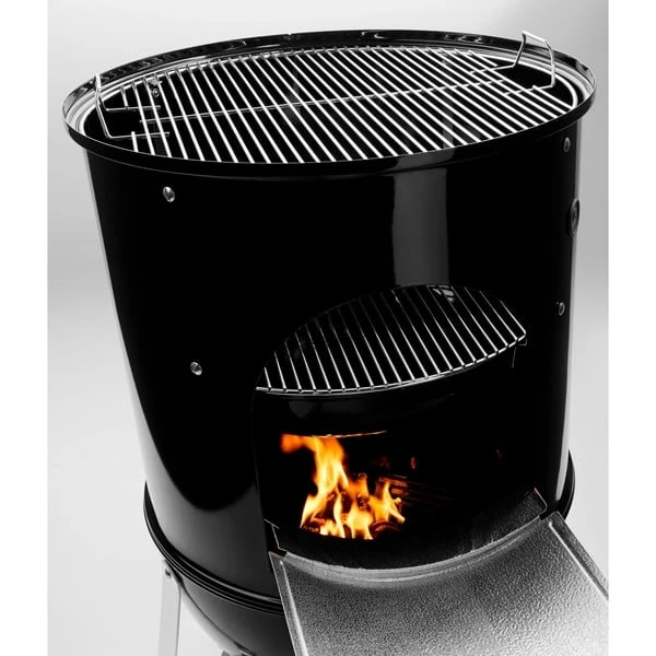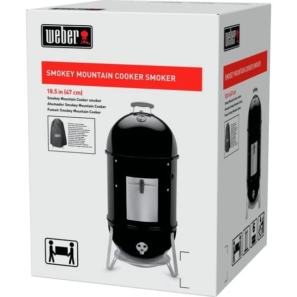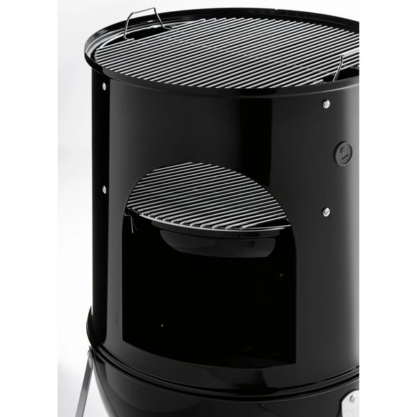 Der Stand Räucherofen Weber Smokey Mountain Cooker eignet sich perfekt für das Räuchern von Fisch und Fleisch. Auf zwei Ebenen und einem verchromten sowie klappbaren Grillrost mit 57 cm Durchmesser lassen sich große Fleischstücke oder verschiedene Fische perfekt räuchern und garen. Die drei Zuluftöffnungen lassen sich getrennt voneinander bequem einstellen um ein perfektes und rauchiges Aroma zu erreichen. Das integrierte Thermometer im Deckel zeigt die aktuelle Temperatur exakt an und dank der großen Öffnung des Smokey Mountain Cooker lassen sich Briketts und Räucherchips einfach und schnell nachlegen.Art.-Nr.: 1058079